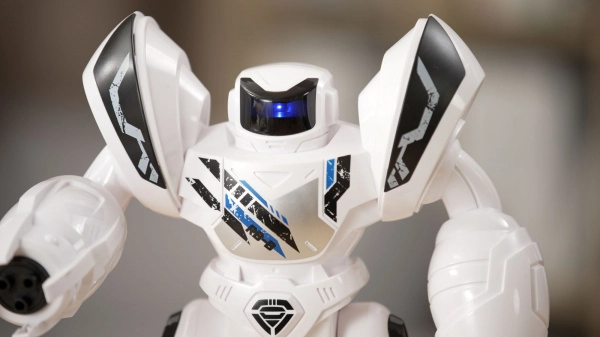 Découvrez un jeu interactif avec le robot Blast de SILVERLIT. Ce robot blanc de 30 cm combine télécommande, séquences programmables et effets lumineux et sonores pour une expérience de jeu maximale. Grâce au tir de projectiles sûrs, il apporte de l’action, tandis que le visage LED et les mouvements dynamiques captivent dès le premier regard.
