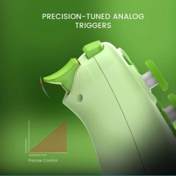 La manette est conçue pour le confort et la performance : le Turbo 20 Hz avec boutons assignables accélère vos actions, tandis que le bouton multifonction M facilite le réglage rapide des vibrations, de la disposition ABXY et des zones mortes. Deux moteurs de vibration dans les poignées renforcent le réalisme, et le contrôle fluide des gâchettes analogiques améliore l'expérience dans les jeux de course comme d'action.