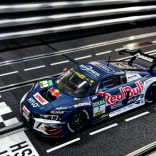 Voiture de course pour circuit de la série Digital 132 à l’échelle 1:32, représentant l’iconique AUDI R8 LMS GT3 evo II aux couleurs de l’équipe ABT SPORTSLINE / RED BULL portant le numéro 7 du DTM 2024. Elle offre des phares avant et feux arrière fonctionnels, des balais de contact doubles pour une alimentation fiable et une conduite stable grâce au magnét et au guide. Sont inclus dans la boîte des balais de contact de rechange, un guide et d’autres accessoires.
