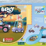 Profitez de vos premières sensations de course avec le circuit Carrera First aux motifs BLUEY et BINGO. La piste compacte de 2,4 m offre des lignes droites, des virages et des hélices amusantes, deux petites voitures, des commandes de vitesse et un montage facile. Idéal pour les enfants à partir de 3 ans, fonctionnement sur piles 4× C.