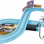 Faites découvrir à vos enfants l’univers de la course grâce au circuit Carrera First sous licence BLUEY. La piste à l’échelle 1:50 se monte facilement grâce au système de clips et reste bien en place grâce aux supports stables. Deux voitures colorées Bluey et Bingo avec aimant et balais de contact adhèrent parfaitement et négocient sans peine les hélices ludiques.