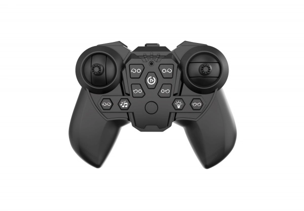 Une manette ergonomique avec double joystick et des boutons dédiés pour les lumières, les sons et le mode démo offre un contrôle précis et intuitif.