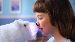 Les couleurs de la lumière représentent des émotions : le bleu signifie froid et joie, le vert somnolence/sommeil et le rouge trop de chaleur – c’est alors le moment d’utiliser le cube de glace magique. Frottez-le délicatement sur la tête de l’ourson et observez comment son nez s’illumine comme par magie et comment l’ourson se « rafraîchit ».
