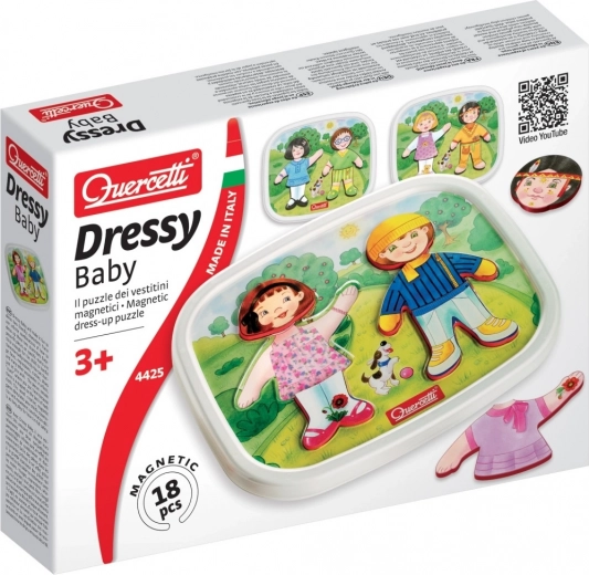 Le jeu magnétique d’habillage QUERCETTI Dressy Baby apporte aux enfants la joie de découvrir et de créer. Grâce à 18 pièces magnétiques, ils peuvent inventer d’innombrables combinaisons de tenues, exercer leur imagination et développer des compétences essentielles en s’amusant. Des aimants solides garantissent que les pièces restent bien en place pendant le jeu.