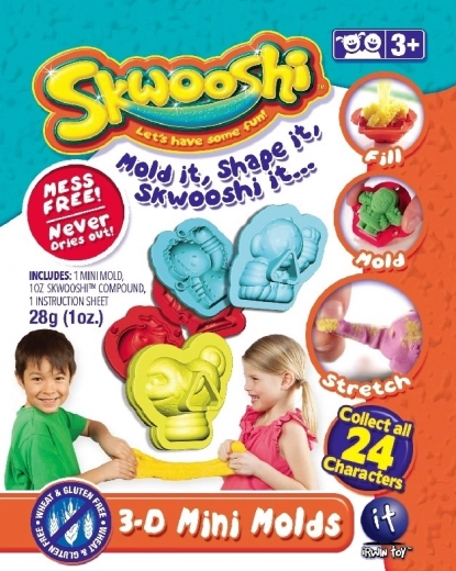 Découvrez le plaisir des sachets de collection SKWOOSHI – chaque paquet renferme 28 g de pâte à modeler spéciale et 1 mini moule 3D. La pâte est non collante, ne laisse pas de saleté et ne sèche jamais, offrant ainsi un jeu créatif durable. Il existe 24 moules différents à collectionner, idéal comme petit cadeau et divertissement nomade pour les enfants dès 3 ans.