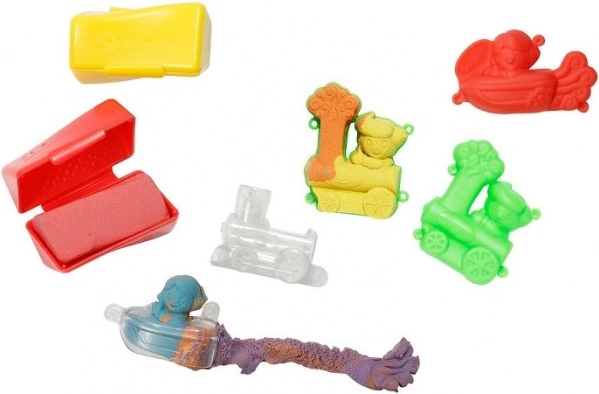 Skwooshi set d’action : pâte hypoallergénique et sans gluten, qui ne sèche pas et ne tache pas. Deux couleurs, moules de véhicules et capsules pour le jeu créatif dès 3 ans.
