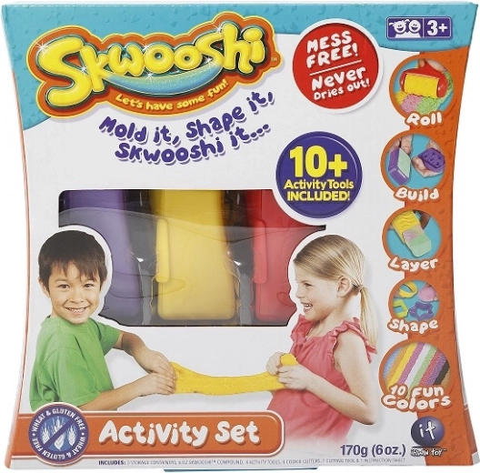 Le coffret créatif Skwooshi offre aux enfants des possibilités de modelage infinies grâce à une pâte unique, élastique, facile à façonner et qui ne laisse pas de désordre. Idéal pour les activités à la maison, en crèche ou à l’école.