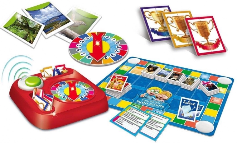 - 312 cartes, spinner, minuteur électronique, plateau de jeu, socle, piles, notice