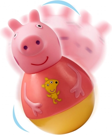 Élargissez les aventures des enfants avec PEPPA PIG grâce à la maison colorée Weebles, où les personnages se balancent joliment sans tomber. En tournant la manivelle, les enfants font avancer Peppa sur la rampe, descendent le toboggan et atterrissent dans une flaque de boue – le tout avec un accent sur la sécurité et la prise en main facile pour les petites mains.