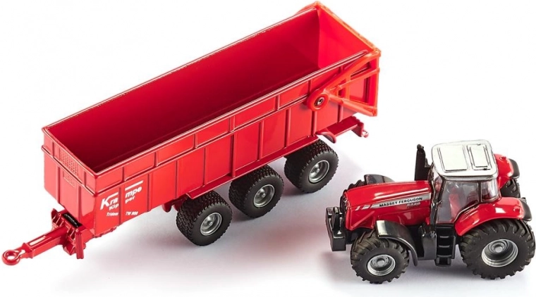 Modèle de tracteur MASSEY FERGUSON avec remorque de SIKU à l’échelle 1:87, fini avec précision, qui ravira enfants et collectionneurs. La combinaison de métal et plastique assure la durabilité, tandis que la cabine amovible et la remorque basculante fonctionnelle offrent un jeu réaliste. Les roues pivotantes avec pneus en caoutchouc garantissent un déplacement fluide sur diverses surfaces.