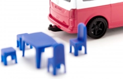Grâce au dispositif d’attelage et aux roues interchangeables, vous élargissez facilement les possibilités de jeu et la compatibilité avec d’autres modèles. Sont également inclus le mobilier de camping – chaises et table – pour des scénarios complets, du pique-nique aux longues escapades.