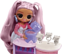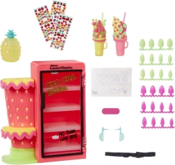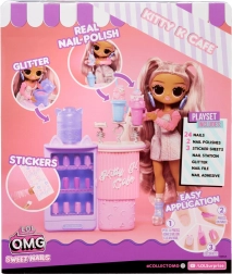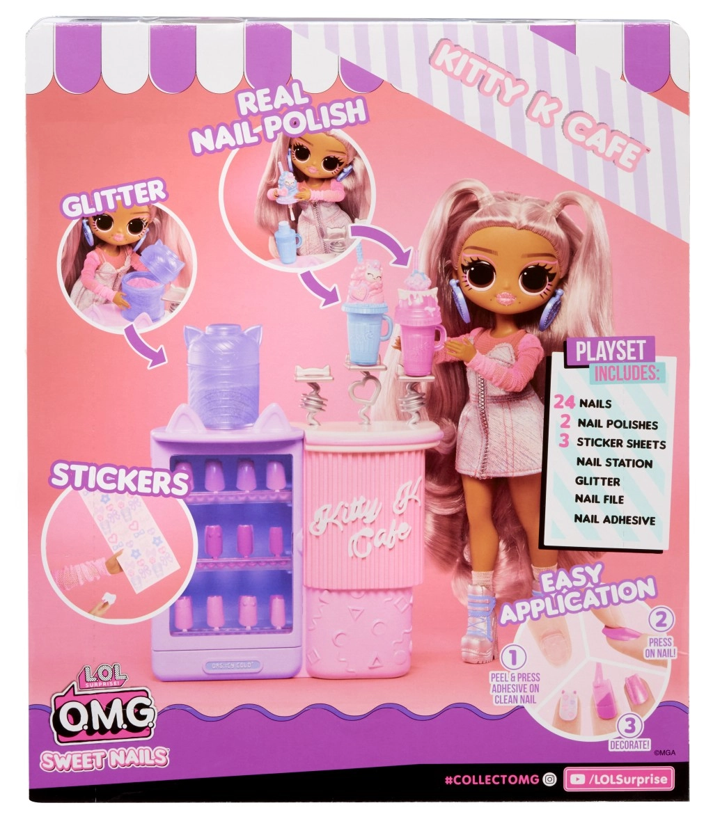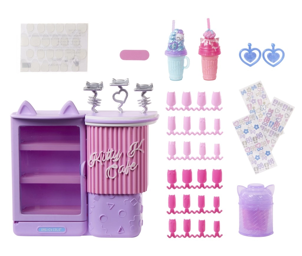 Le set comprend une poupée fashion aux longs cheveux pastel et un corps articulé pour des poses réussies, le comptoir de café Kitty K Cafe avec accessoires pour servir des boissons, ainsi qu’un riche assortiment de décorations pour ongles. Idéal pour le jeu créatif, la collection et l’exposition.