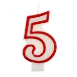 Une bougie de gâteau élégante en forme de chiffre 5, de couleur blanche avec un contour rouge marqué, apportera une touche unique à toute fête. Grâce à son support pratique, elle se place facilement et de manière stable sur le gâteau. Un excellent choix pour les anniversaires et les jubilés de tout âge.