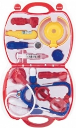 Stéthoscope, thermomètre, seringue et d’autres instruments colorés inspirent un jeu réaliste et amusant, stimulant l’imagination et la communication.