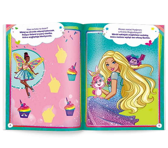 Entrez dans l’univers féerique de BARBIE Dreamtopia, où chaque page apporte une nouvelle aventure. Les enfants peuvent créer leurs propres histoires, décorer des scènes et développer leur imagination grâce à deux planches d’autocollants à effet scintillant. Les activités sont conçues pour correspondre aux capacités des enfants de 4 à 7 ans – ludiques, claires et motivantes.