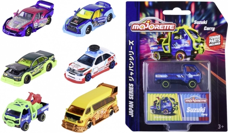 La série comprend six modèles populaires : NISSAN Cefiro A31, NISSAN GT-R, HONDA Civic Type R EK9, NISSAN Z, TOYOTA Supra JZA80 et SUZUKI Carry. Chaque modèle est équipé d’accessoires de tuning et propose des éléments ouvrants, des pneus en caoutchouc et une suspension fonctionnelle pour un plaisir maximal de jeu comme d’exposition.