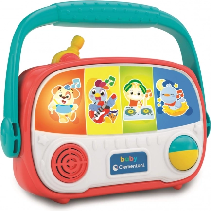 La radio parlante interactive pour enfants CLEMENTONI, destinée aux tout-petits dès 6 mois, offre des effets lumineux colorés, quatre grands boutons et des mélodies joyeuses. Elle favorise la perception auditive, le développement de la motricité fine et initie les enfants à différents genres musicaux ainsi qu’aux sons d’animaux. Grâce à sa poignée pratique, elle est idéale pour les voyages et les petites sorties.