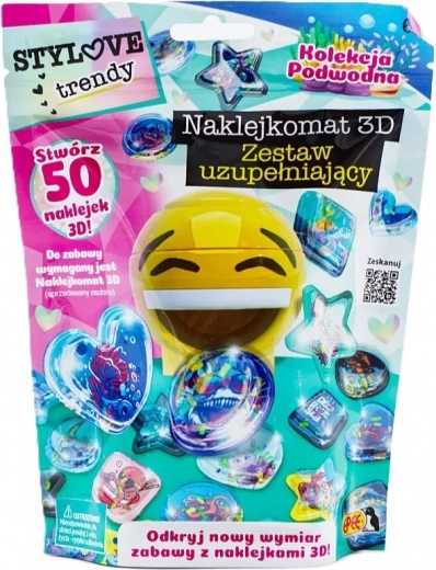 Ce set créatif est idéal pour les petits artistes dès 6 ans. Grâce à sa simplicité d’utilisation, il suffit de choisir les décorations, de les insérer dans l’appareil Naklejkomat 3D et d’appuyer sur le bouton. Le résultat : des autocollants 3D résistants et colorés aux motifs sous-marins qui donnent un style unique à chaque objet.