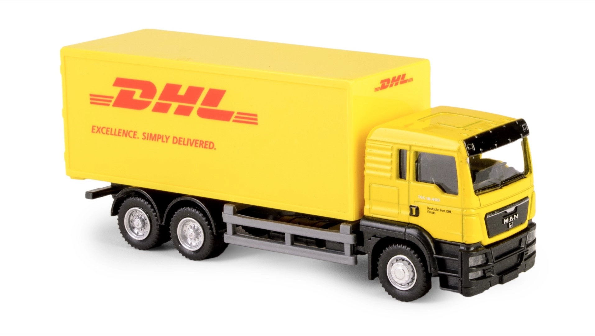 Couleurs, logos et proportions authentiques du véhicule DHL grâce à la licence officielle. Cabine, châssis et caisse de chargement finement reproduits pour ravir petits conducteurs et collectionneurs.