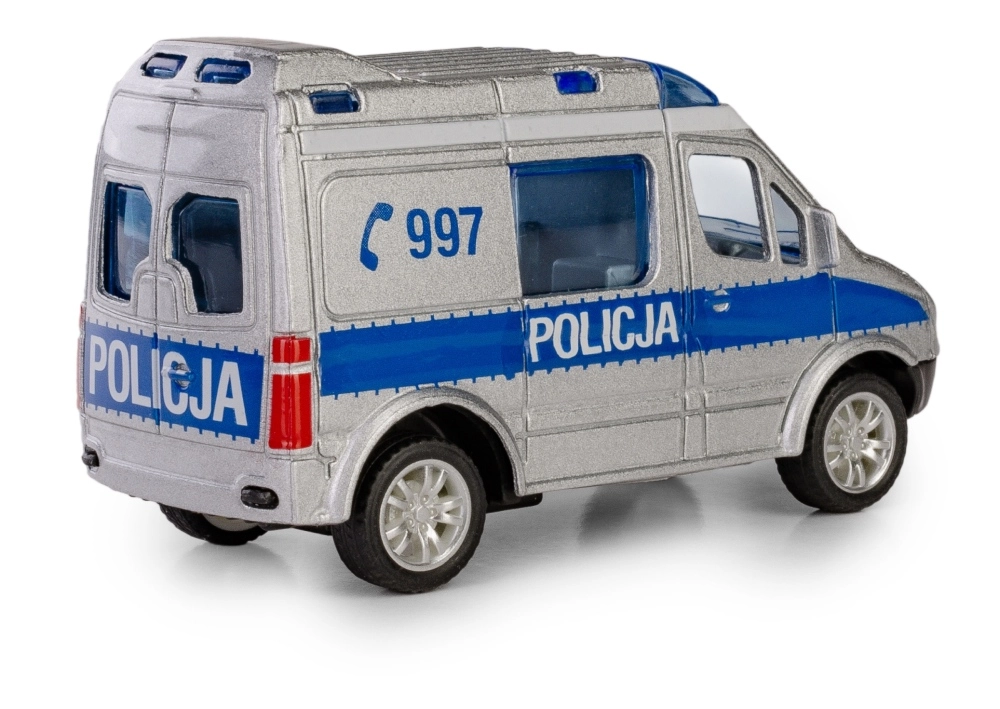 Modèle de police MERCEDES-BENZ Sprinter détaillé à l’échelle 1:50 de la marque Daffi, combinant métal et plastique pour une meilleure durabilité. Grâce au moteur à rétrofriction (pull-back), il avance tout seul après avoir été tiré en arrière, ce qui augmente le plaisir et l’interactivité. Peinture sans toxiques, licence officielle et conformité aux normes UE en font un excellent choix pour les enfants à partir de 3 ans et pour les collectionneurs.