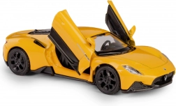 Le modèle est équipé d’un mécanisme à rétrofriction (pull-back) : il suffit de le tirer en arrière, de le lâcher et la voiture part vivement vers l’avant. Sa finition jaune, ses roues libres pivotantes et ses matériaux robustes garantissent une longue durée de vie lors du jeu ainsi qu’un look attractif en vitrine.