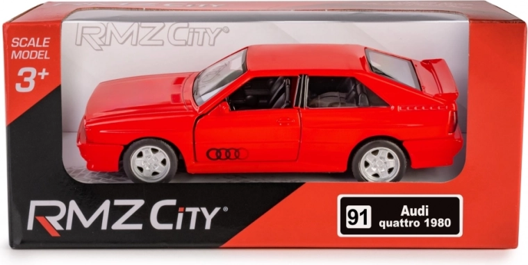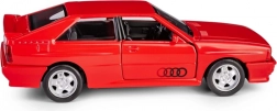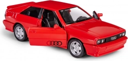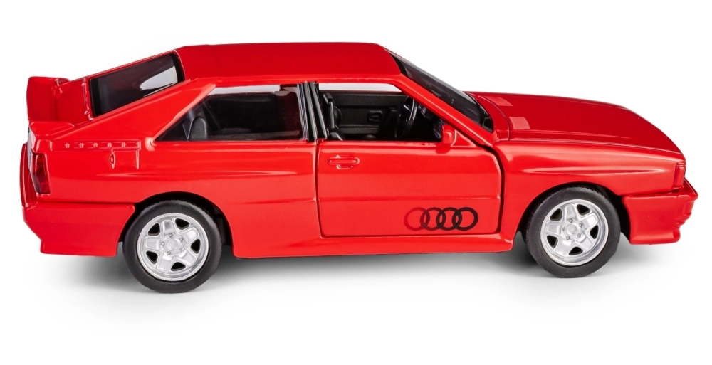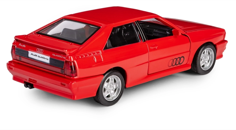 Vernis brillant, lignes de carrosserie nettes, logos et jantes argentées soulignent le style iconique de l’AUDI QUATTRO.