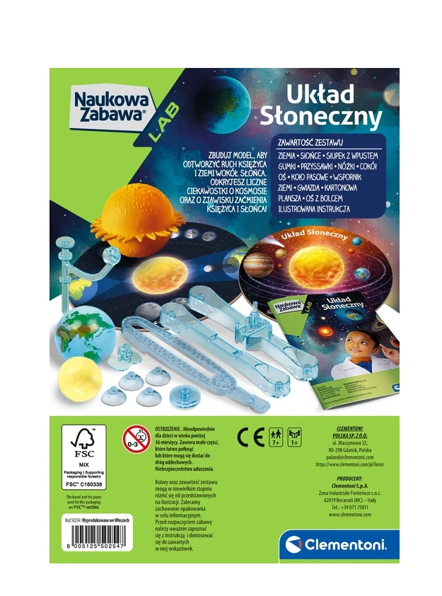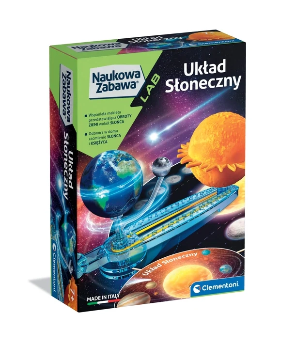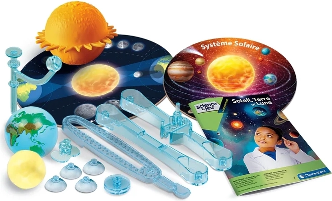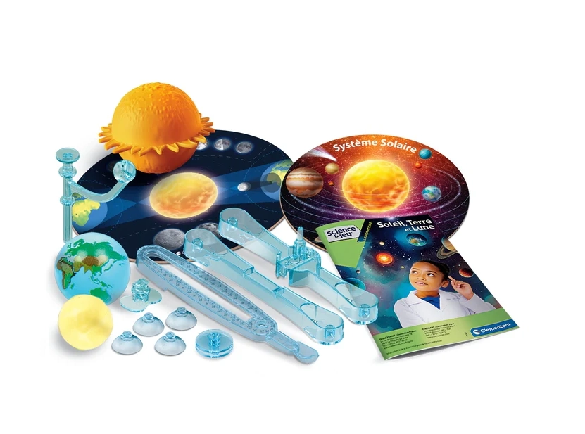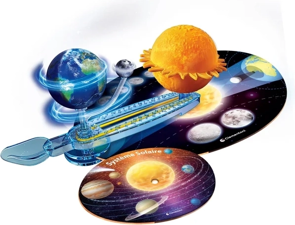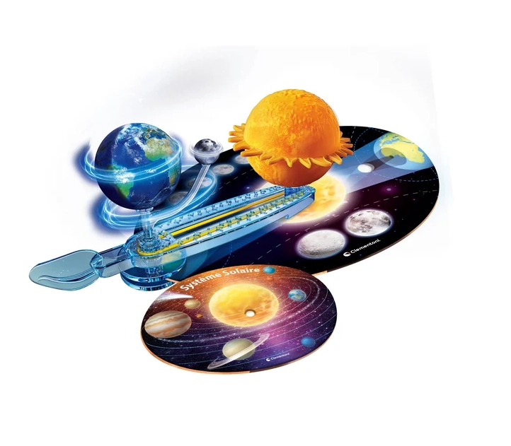 Explorez l’espace de près avec le modèle interactif du système solaire de la marque Clementoni. Les enfants peuvent faire tourner manuellement la Terre autour du Soleil et la Lune autour de la Terre, et observer de leurs propres yeux la formation des phases de la Lune, des saisons et des éclipses. Grâce au manuel clair, tout est simple, amusant et sûr.