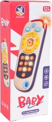 Rétroéclairage supérieur, grand bouton central lumineux avec icône TV et clavier numérique. Mélodies, sons d’animaux, salutations, émotions, mois, saisons et jours de la semaine.