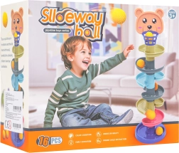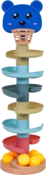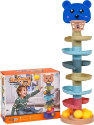 Amusant circuit de billes avec ourson pour enfants dès 3 ans, proposant des toboggans en spirale à plusieurs niveaux, 7 balles sûres et une construction modulaire pour ajouter ou retirer facilement des étages. Développe la motricité fine, la coordination œil-main et la précision en lançant les balles dans le panier.