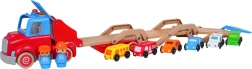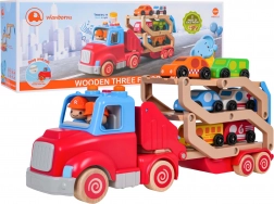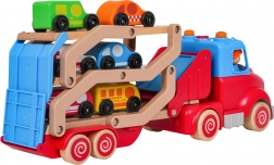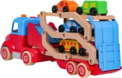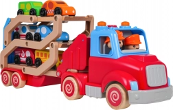 Ce camion dépanneuse en bois avec rampe favorise la motricité fine, la coordination et l’imagination. Grâce à ses couleurs vives et à ses éléments fonctionnels – rampe relevable et inclinable, ensemble détachable, roues mobiles – les enfants chargent et déchargent facilement les petites voitures et inventent leurs propres histoires de transport.