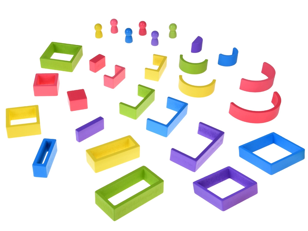 Arches, cadres, ponts et autres formes peuvent être empilés, imbriqués et équilibrés. Les enfants entraînent leur motricité fine et l’apprentissage se fait naturellement par le jeu.