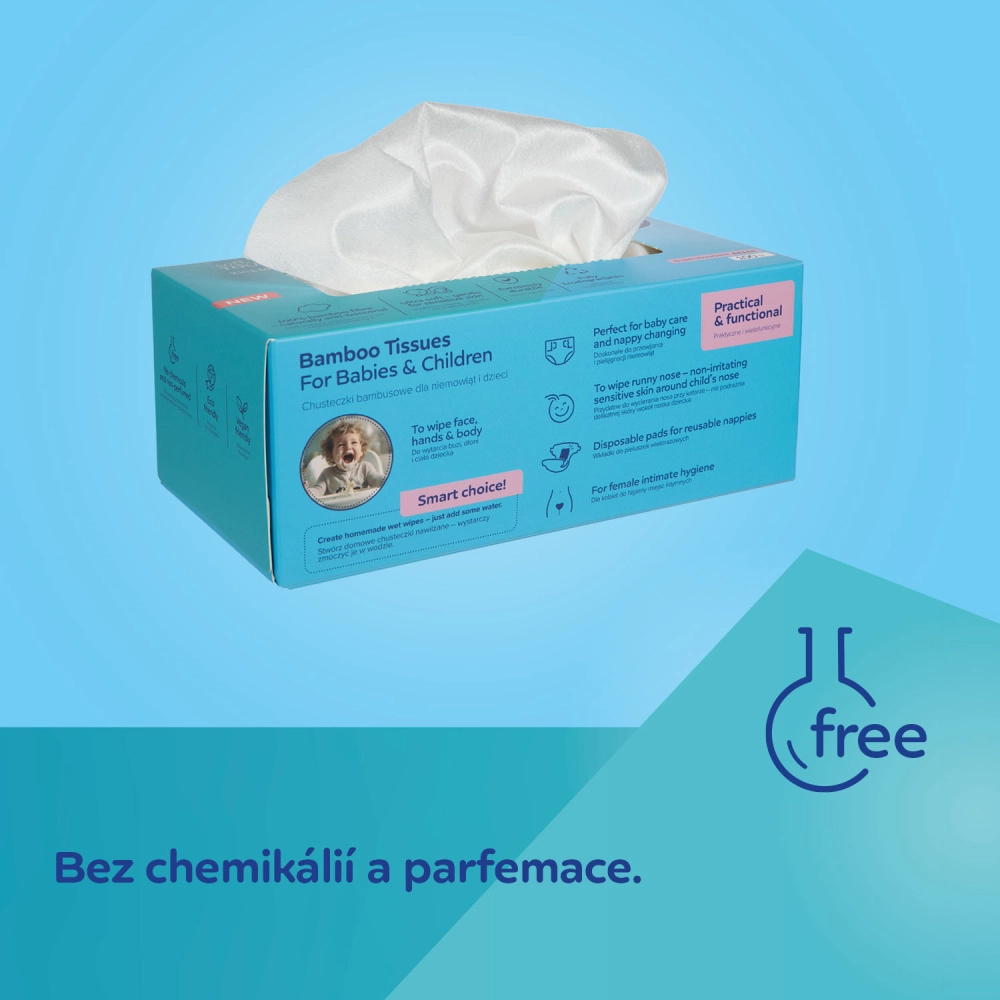 Lingettes en bambou extra douces et résistantes pour bébés et enfants. Fabriquées en 100 % fibre de bambou, naturellement antibactériennes, sans produits chimiques ni parfums et respectueuses de l’environnement. Adaptées dès la naissance, idéales pour les soins, le change et comme lingettes maison 2‑en‑1 – il suffit d’ajouter de l’eau.