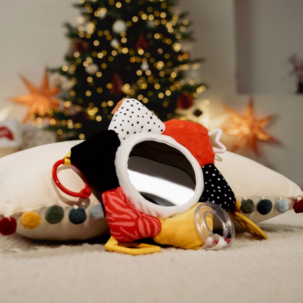 Le miroir sensoriel BabiesBoo est conçu pour l’exploration naturelle du monde dès les premiers jours de vie. Les motifs contrastés, les textures variées et les stimuli sonores délicats encouragent bébé à saisir, presser, observer et écouter. Les matériaux doux sont agréables au toucher et sûrs pour un jeu quotidien à la maison comme en voyage.