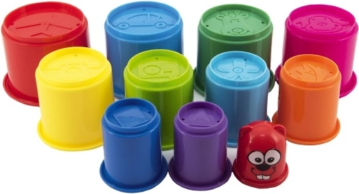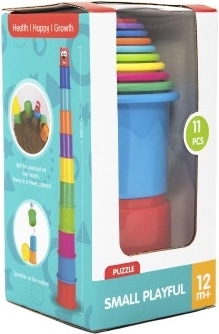 L'ensemble de tasses empilables colorées comprend 11 pièces qui peuvent être utilisées pour créer une tour haute. Les tasses sont disponibles en différentes couleurs et peuvent être imbriquées les unes dans les autres, ce qui est un excellent moyen de développer les compétences motrices fines de votre enfant.