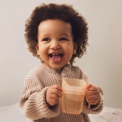 La tasse d’apprentissage LOVI Genius Nude a été conçue en collaboration avec des orthophonistes pour que l’enfant s’entraîne à boire comme dans une tasse ouverte en toute sécurité. L’insert interne ralentit l’écoulement du liquide et réduit le risque de s’étouffer. Grâce aux parois transparentes, l’enfant voit le niveau, n’a pas besoin de trop pencher la tête et les parents peuvent contrôler la quantité bue.