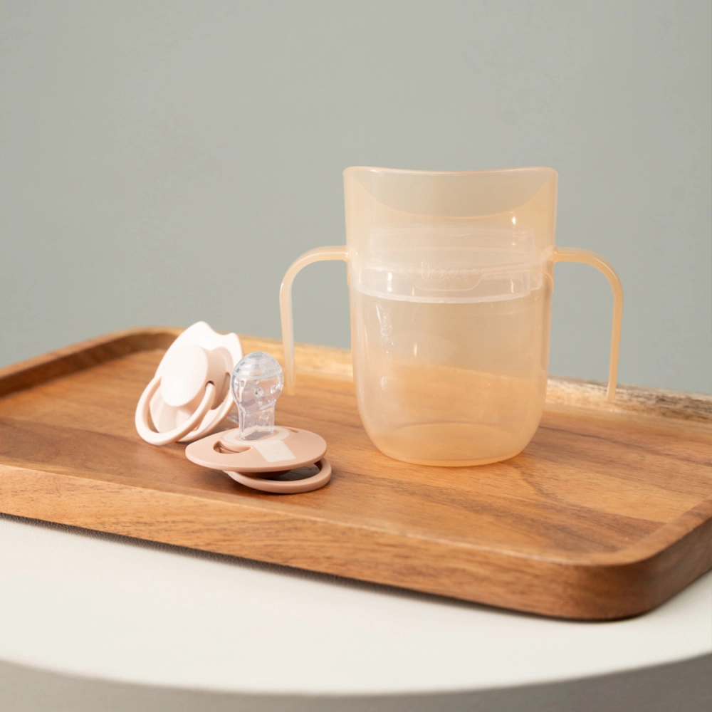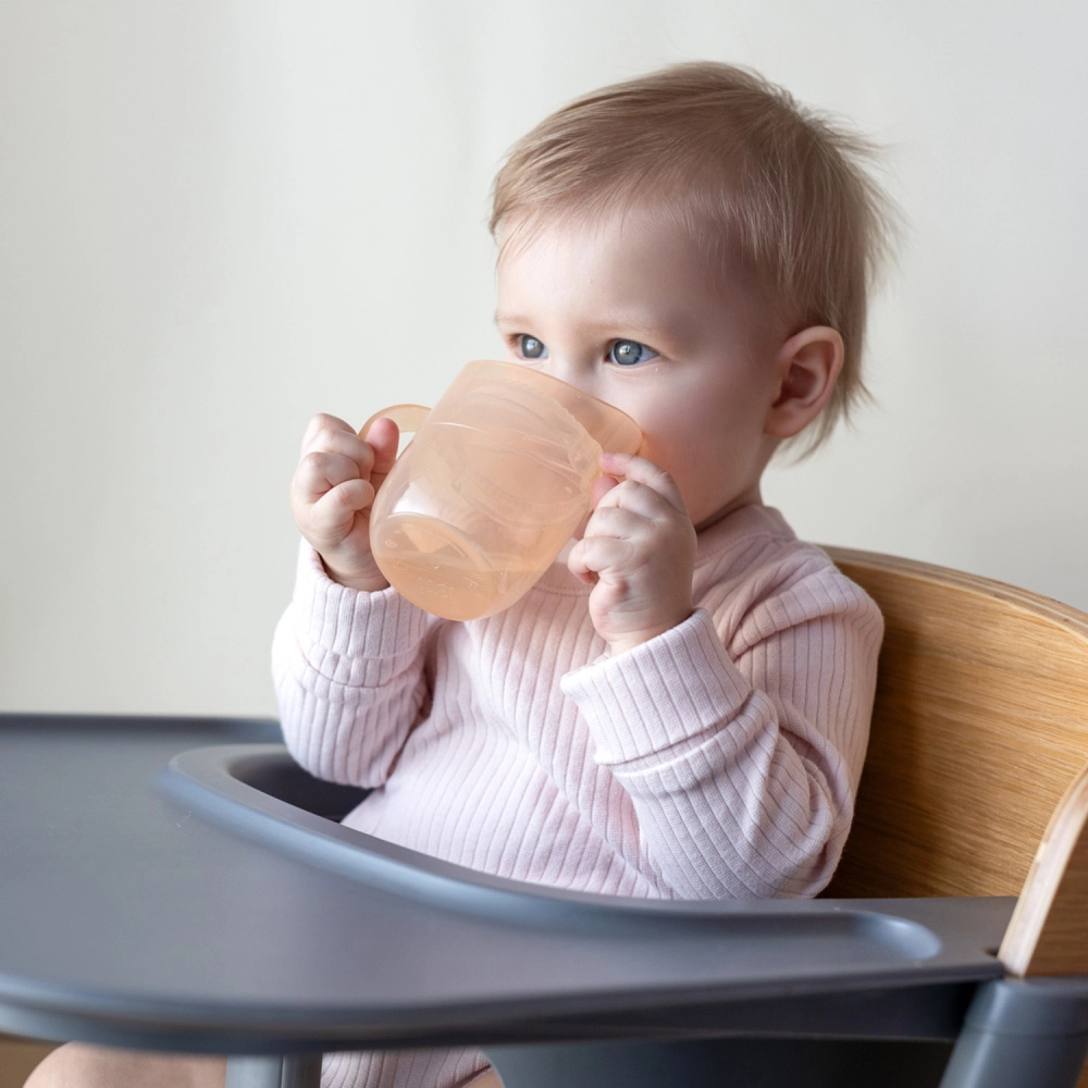 La structure légère, les poignées doubles profilées et le petit volume pour débuter (env. 130 ml avec l’insert) facilitent la transition depuis le biberon. Lorsque l’enfant est prêt, retirez simplement l’insert pour obtenir une tasse ouverte de 150 ml – un seul produit qui grandit vraiment avec l’enfant.