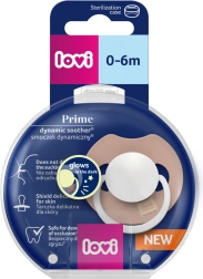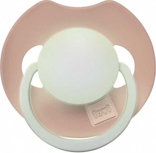 Le centre et l’anse de la tétine LOVI Prime brillent dans l’obscurité, vous permettant de la retrouver rapidement sans allumer la lumière et sans perturber le sommeil de bébé.