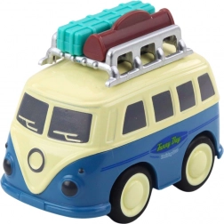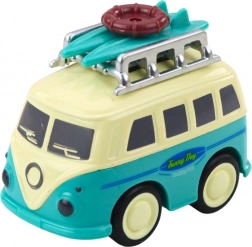 Découvrez le plaisir sur quatre roues avec ce mignon camping-car inspiré des vans de tourisme classiques. Grâce à la propulsion par friction, le véhicule démarre vivement après une légère poussée et le bagage mobile sur le toit apporte de la dynamique à la course. Son format compact se glisse dans un sac à dos pour que l’enfant vive des histoires de voyage partout.