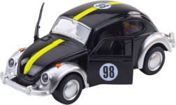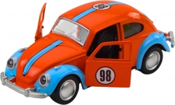 La silhouette classique de la coccinelle avec bandes de course et le numéro 98 évoque une mini réplique de voiture de course – idéale pour jouer ou exposer.