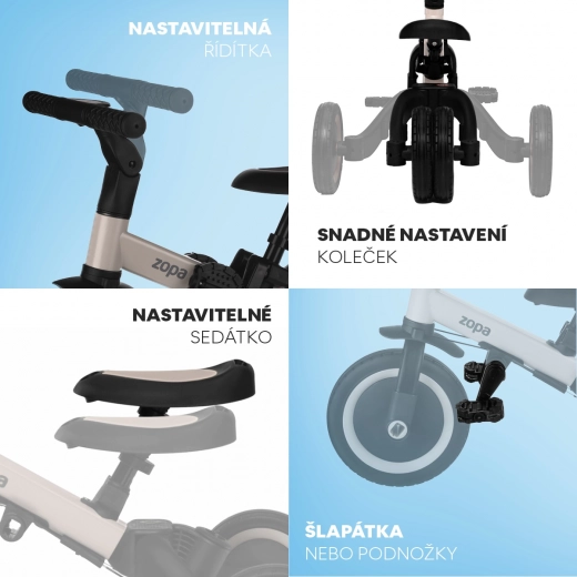 Tricycle Zopa Razor Pro 6-en-1 Kodi Bronze avec barre de guidage