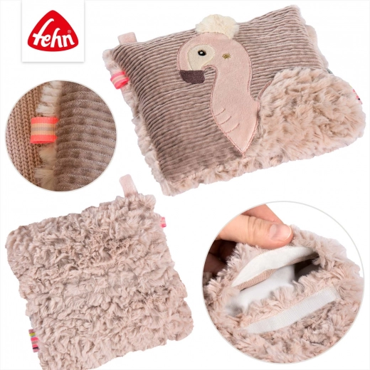 Adorable coussin chauffant en forme de flamant rose avec sachet amovible rempli de noyaux de cerise offrant une chaleur agréable ou une douce fraîcheur. Idéal pour les nourrissons et tout-petits dès la naissance, il apporte apaisement en cas de coliques, de maux de ventre et favorise un sommeil paisible. Parfait pour le lit, le siège auto et la poussette.