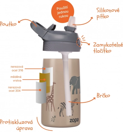 La bouteille au motif Mountains est un compagnon stylé pour l’école, le terrain de jeux et les excursions. L’isolation sous vide et la double paroi garantissent une conservation fiable de la température, tandis que l’acier inoxydable robuste supporte l’usage quotidien par les enfants. Grâce à ses dimensions compactes et à son anse confortable, elle se transporte facilement et se glisse dans la plupart des poches latérales de sac à dos.