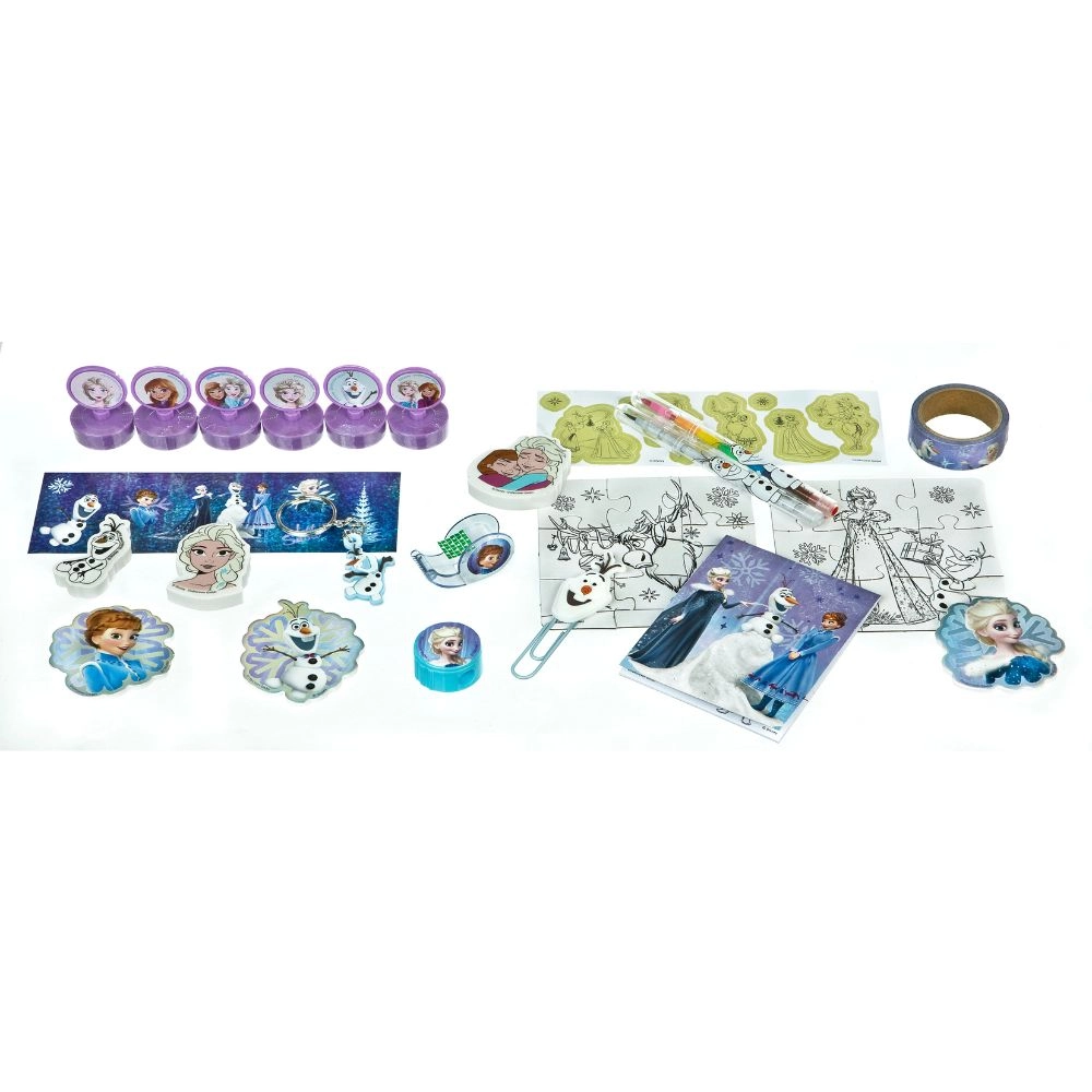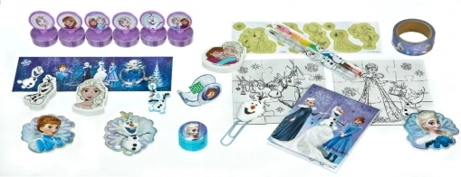 À l’intérieur, découvrez un assortiment coloré d’accessoires et de fournitures scolaires – des mini tampons et autocollants jusqu’au petit carnet ou aux gommes fantaisie. Le tout dans l’univers hivernal de FROZEN pour rendre chaque jour de l’Avent vraiment magique.