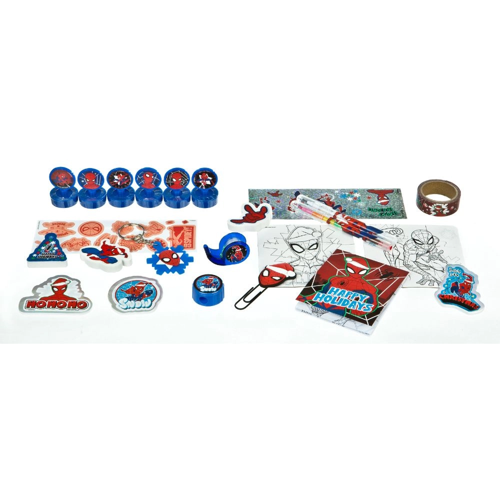 À l’intérieur, les enfants trouveront des petits objets tels que des mini tampons, un puzzle, un porte-clés, un ruban adhésif avec dévidoir, des autocollants holographiques, un mini crayon, un mini crayon de couleur, des autocollants à paillettes mobiles, des trombones, un bloc-notes, des gommes fantaisie et du washi tape. Chaque fenêtre est une petite aventure qui ravira tous les fans de SPIDER-MAN.