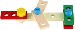 Les enfants exercent leur coordination et leur logique en serrant des écrous et en travaillant avec une clé et un tournevis.