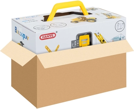 Toutes les pièces sont rangées en toute sécurité dans une boîte transparente avec verrou et poignée jaune. Transport facile, rangement sans pièces perdues – idéal à la maison comme en voyage.