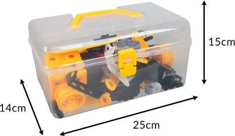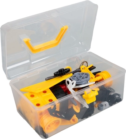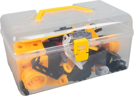 Ce kit pour petits constructeurs propose un riche ensemble de pièces interactives incluant roues, engrenages, vis et outils, grâce auxquelles les enfants assembleront divers véhicules roulants et des modèles mécaniques simples. Le tout est rangé de façon ordonnée dans un coffret de rangement avec poignée solide, pour un transport et un stockage faciles.
