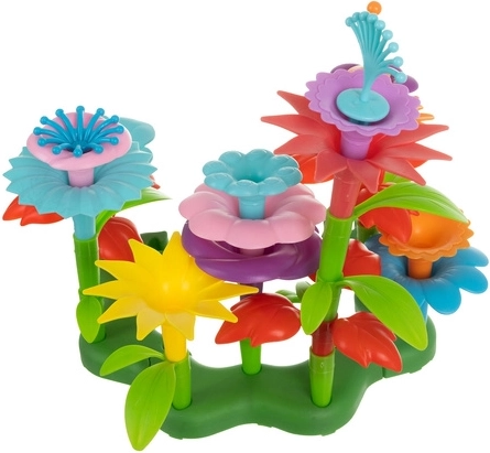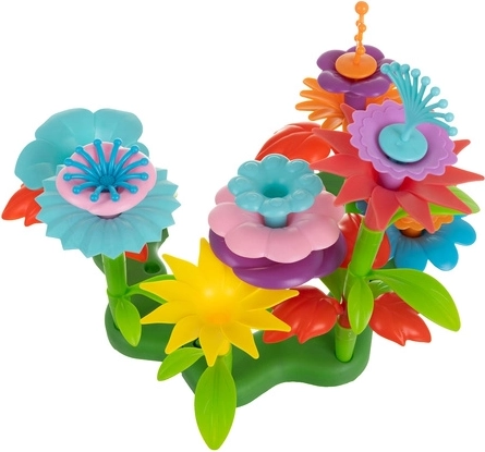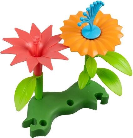 Ce set coloré permet aux enfants d’assembler tiges, feuilles, pétales et pistils en compositions florales originales. Grâce aux pièces modulaires, les fleurs peuvent être sans cesse réagencées et étendues, stimulant ainsi la créativité et la logique. Les socles verts stables maintiennent solidement les créations en place.