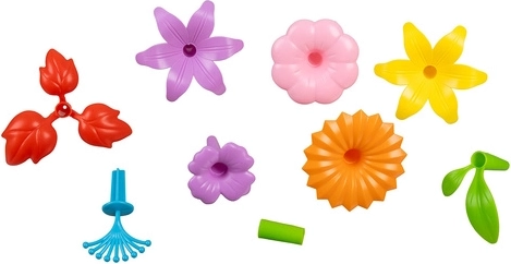 Les pièces s’emboîtent entre elles – tiges, feuilles et pétales se connectent facilement pour former des fleurs et compositions originales. Stimule l’imagination et la motricité fine.