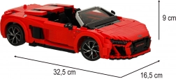 Cette boîte détaillée propose un modèle AUDI R8 Spyder réaliste avec des lignes de carrosserie, des roues et un cockpit minutieusement travaillés. Grâce au grand nombre de pièces, vous créerez une maquette précise aux dimensions de 32,5 × 16,5 × 9 cm, remarquable sur une étagère ou au bureau.